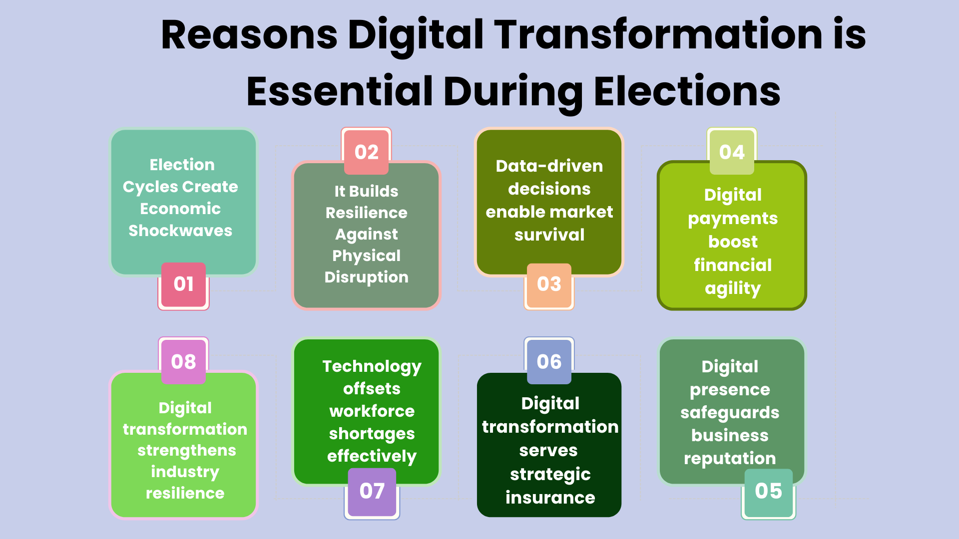When election-related disruptions affect mobility, digitally enabled companies can maintain operations. Employees collaborate remotely, e-commerce platforms sustain sales, and digital marketing keeps customers engaged.